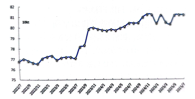 經(jīng)調(diào)整,7月份產(chǎn)量為376.4萬噸;預(yù)計(jì)8月份產(chǎn)量為376.5萬噸,同比增長(zhǎng)1.2%,環(huán)比基本持平。