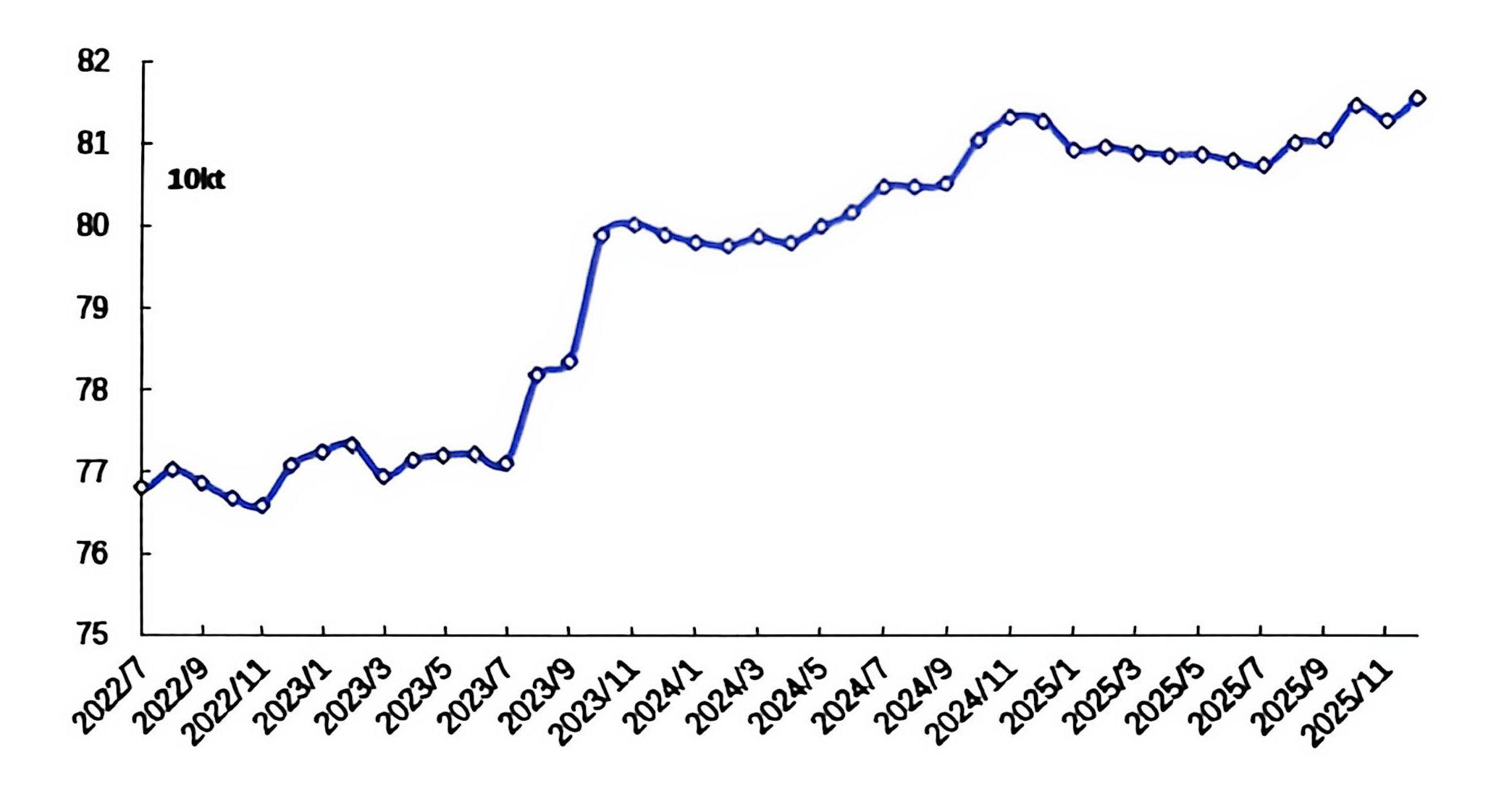 經(jīng)調(diào)整,1月份產(chǎn)量為378.6萬(wàn)噸;預(yù)計(jì)2月份產(chǎn)量為342.1萬(wàn)噸,同比增長(zhǎng)0.6%,日均產(chǎn)量約12.22萬(wàn)噸。